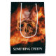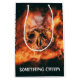 Something Creepy text can be customised by you. Flaming skull in space design.
