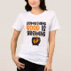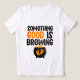 Something Good Is Brewing Halloween Baby Mum-to-be Script T-Shirt features the text "Something Good Is Brewing" in modern black and orange script accented with a witch's cauldron with baby footprints. Perfect for trick or treat, Halloween, birthday parties, baby showers and more. Designed by Evco Holidays www.zazzle.com/store/evcoholidays