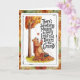 This charming fall card features a happy bear raking colorful leaves beneath a glowing autumn tree with the message There’s something magical in every leaf that dances to the ground. Perfect for autumn greetings, encouragement, seasonal notes, or celebrating the beauty of fall.