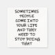 For the sarcasm lover in all of us. Check out this witty “Sometimes People Come Into Your Life and They Need to Stop Doing That” design on apparel and gifts.