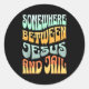Somewhere Between Jesus And Jail Funny Christian Q Classic Round Sticker