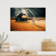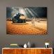 A surreal, thought-provoking scene depicting two human figures standing in a vast desert, facing a partially buried Earth under dramatic rays of light. This artwork explores themes of humanity, isolation, responsibility, and our fragile relationship with the planet. A cinematic blend of surrealism and science-fiction atmosphere, ideal for modern interiors, conceptual wall art, and collectors drawn to symbolic and futuristic visuals.