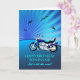 Happy birthday son-in-law card with a motorbike. A perfect card for a biker. A blue motorbike with a stylised sunset and flying birds. Any bike enthusiast will love to get a card like this.