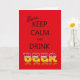 A funny card urging you to keep calm and drink beer on your birthday. A spoof on the internet meme.