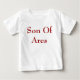 A baby shirt with "Son of Ares" in red text on the front. Ares was the ancient Greek god of war and battles, and like most of the Gods he tended to have flings with various women.