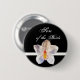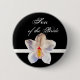 Son Of The Bride Wedding ID Badge Button. White orchid on black backgound photographed and designed by TDSwhite at www.ArtisticPostage.com.