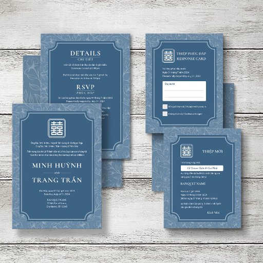 Vietnamese Greyish Blue Line Art Wedding SetDesigned by Tracy Ta