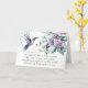 Beautiful greeting card with inspirational quote scripture depicts a lovely floral watercolor design with a hummingbird, simple lavender and purple flowers and greenery. It features an encouraging Bible Verse Song of Solomon 2:11-12, "For behold, the winter is past; the rain is over and gone. The flowers appear on the earth, the time of singing has come." The greeting, prayer can be personalised or deleted for a hand written message.