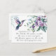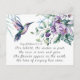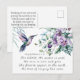 Beautiful postcard with inspirational quote scripture depicts a lovely floral watercolor design with a hummingbird, simple lavender and purple flowers and greenery. It features an encouraging Bible Verse Song of Solomon 2:11-12, "For behold, the winter is past; the rain is over and gone. The flowers appear on the earth, the time of singing has come." The greeting, prayer can be personalised or deleted for a hand written message.