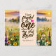 Postcard with inspirational quote scripture depicts a beautiful nature watercolor including a meadow with white and yellow wildflowers and a sunrise over the mountains in the background. It features a beloved Bible Verse from Song of Solomon 3:4, "I have found the one whom my soul loves." The greeting, prayer can be personalised or deleted for a hand written message.