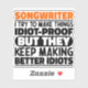 Funny Songwriter Sayings "Songwriter I Try To Make Things Idiot Proof But They Keep Making Better Idiots". Grab this Funny Songwriter design as a funny gifts for an awesome mum, dad or friend.