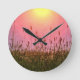 Gräser auf der Wiese mit rosa Hintergrund und Sonne