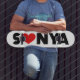 The name Sonya with the letter o replaced with a red love heart. The colours can be changed.