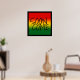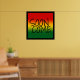 The famous three-toned stripe colors synonymous with Jamaican culture creates the perfect background for the all-caps Jamaican phrase, SOON COME.