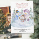 Christmas card pregnancy announcement with due date of new baby. The wording reads "Merry Christmas from our soon-to-be famly of three!" (which you can edit if you wish), followed by your personalised christmas greeting. This watercolor design features 3 cute snowmen with a backdrop of christmas trees. The photo template is set up for you to add a pregnancy photo or sonogram ultrasound picture on the back with baby due date or your custom text. Your photo is displayed in vertical portrait format so if you have any problems with picture placement, try cropping to the relevant shape and re-uploading.