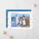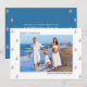 Upload your photo to this clean and minimalist holiday pregnancy announcement card. The photo template is set up for you to add your picture to the front, in landscape format, as well as your message on the back. The wording on the front is fully editable and currently reads "merry christmas from our soon to be family of four". You can of course customise it to Happy Holidays and family of six for example, or whatever fits your needs. The design has simple brush sketched christmas trees and a modern colour palette of blue, grey, black and white.