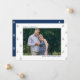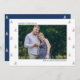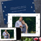 Upload your photo to this clean and minimalist holiday pregnancy announcement card. The photo template is set up for you to add your picture to the front, in landscape format, as well as your message on the back. The wording on the front is fully editable and currently reads "merry christmas from our soon to be family of three". You can of course customise it to Happy Holidays and family of five for example, or whatever fits your needs. The design has simple brush sketched christmas trees and a modern colour palette of midnight blue, grey and white.