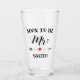 Soon to be Mrs. personalised with name for the bride to be. Soon to be in black uppercase letters with Mrs in tall decorative cursive lettering. Embellished with a black doodle arrow and red heart. Personalise with new surname in matching black font.