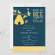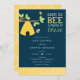 Bee theme Baby Shower invitation. Soon to BEE a family of three in a fun handwritten script featuring a honeycomb and bees. Different colour backgrounds available. Personalise with your information or click "click to customise further" to adjust font type, size, colour.