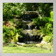This quiet trickling stream over three tiers of rock set in amongst beautiful green shrubs provides a tranquil scene.