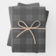 This set of wrapping paper sheets features a Doty grey gingham style plaid pattern with coordinating sheets in two shades of sooty grey.