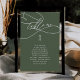This refined sage green wedding seating chart card from the Sophia Collection features sweeping calligraphy in crisp white. Elegant yet outdoorsy — it's ideal for garden, vineyard, or woodland weddings with a natural, romantic feel.