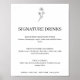 This simple signature drinks sign is perfect for an elegant, modern wedding with a minimalist flair. The design features a chic, black and white botanical floral element with flowers and leaves. This sign would also be great for bridal showers, rehearsal dinners, engagement parts or any special occasion. Designed as part of our stylish Sophia wedding collection. If you need assistance customizing this wedding sign or would like me to create additional, matching products, please contact me through the Zazzle messaging system or at admin@albamarie.com. I'd be happy to help!