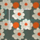 Create your own accessories with matching pattern material. A mid-century modern-inspired bedroom collection featuring a bold, large-scale white flower design set against a rich, dark sage background. This striking colour combination adds a touch of sophistication and elegance to any bedroom. The bright orange accents provide a pop of colour that is both playful and stylish. The SOPHIE collection contains a wide range of matching accessories, including items that can be customised with your name or sayings.