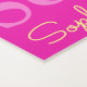 Typographic name and flower pink, yellow and white on a dark pink background yoga mat design. Background colour can be changed if required. Fun personalised graphic text and flower art beach towel. Personalise with your own short name, currently reads Sophie for help with personalisation and other name lengths please contact me. © Art and design by Sarah Trett for www.mylittleeden.com