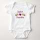 Celebrate the birth of a friend's baby girl with this cute white bodysuit with the customisable texts Sophie [hearts] / loves Grandma, in dark pink letters, and with two identical branches with flowers and birds, suitable for baby girls who are one half of twin sisters or siblings. Make sure you personalise the name Sophie. You can also change Grandma to something else, if you want (for instance Mummy or Daddy).