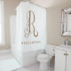 Simple but sophisticated and elegant. White curtain with a beautiful R monogram and last name personalisation.
