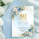 Sophisticated 80th Birthday Invite Dusty Blue Gold