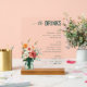 This acrylic sign features a sophisticated layout with a minimalist design, showcasing a vase of soft pastel flowers on the left and neatly organized text on the right. The color palette includes muted teal-green text against a clean white background, creating an elegant contrast. The typography is modern and clear, with stylish script for "the DRINKS" and sans-serif fonts for beer, wine, and spirits lists. Perfect for enhancing any upscale setting, this sign exudes a refined mood ideal for entertaining or decor.