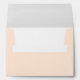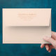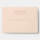 This wedding envelope features a minimalist design with centered text on a soft peach background, creating an elegant and modern look. The color palette combines the warm peach hue with subtle gold typography for a sophisticated contrast. Utilizing clean serif fonts, the layout emphasizes simplicity and balance, making it perfect for formal occasions like weddings. The absence of additional graphics keeps the focus on the essential details, ensuring clarity and a refined aesthetic. Ideal for couples seeking understated yet stylish stationery to complement their special day.