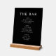 This acrylic sign features a sleek, minimalist design with a solid black background and crisp white text. The layout is organized into three sections—Beer, Wine, and Spirits—each listing popular beverage options in a clean, sans-serif font that emphasizes clarity and sophistication. The modern aesthetic, with its ample negative space and bold typography, creates an inviting atmosphere perfect for enhancing any bar or home setting. Ideal for adding a touch of elegance to your decor, this sign combines functionality with style, making it a great addition for entertaining spaces.