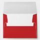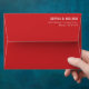This wedding envelope features a minimalist design with a bold red background and clean, white typography. The layout is simple yet elegant, showcasing the names and address in a modern sans-serif font that emphasizes clarity and sophistication. Perfect for couples seeking a contemporary look, this envelope combines striking color contrast with a formal tone, making it ideal for weddings or significant announcements. Its straightforward composition ensures your details stand out, while the absence of additional motifs keeps the focus on the essential elements.