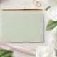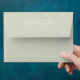 This envelope features a minimalist and modern design with a clean, centred layout on a soft sage green background. The typography is elegant and straightforward, using a sans-serif font that enhances readability and sophistication. Perfect for formal invitations or announcements, the customisable text allows you to personalise it effortlessly while maintaining a professional appearance. The overall mood is one of simplicity and elegance, making it ideal for special occasions like weddings or significant events.