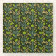 Seamless floral pattern with green leaves and buds on a dark background, featuring intricate blue and beige branches, evoking a natural, elegant feel.