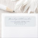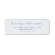This elegant label features a clean, minimalist design with a soft blue-gray color palette. The layout combines flowing cursive script for names and straightforward sans-serif fonts for addresses, creating a harmonious balance between personalization and clarity. Perfect for formal occasions, the simple composition emphasizes sophistication and understated charm, making it ideal for weddings or special events. The ample negative space enhances readability while maintaining an inviting and modern aesthetic.