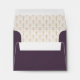 Sophisticated botanical floral bouquet, wedding rsvp envelopes in purple. Features, golden art deco pattern lined interior.