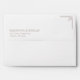 This wedding envelope features a minimalist design with a clean, elegant layout. The colour palette includes muted browns and light greys, creating a sophisticated and understated look. A stylised geometric symbol in the top right corner adds a touch of traditional East Asian flair, while classic serif fonts provide a formal yet modern feel. Perfect for couples seeking simplicity and refinement, this envelope is ideal for weddings that celebrate timeless elegance.