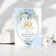 Sophisticated Dusty Blue Floral 80th Birthday Chic Invitation