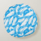 Sophisticated Feather Design On A Bright Blue Round Cushion