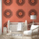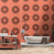 Transform your living space with this stunning wallpaper featuring a sophisticated geometric pattern. The design consists of symmetrical, intricate shapes forming a mesmerising visual centred around a fleur-de-lis motif, all set against a warm terracotta background. This bold and elegant wallpaper is perfect for adding a touch of sophistication and modern style to any room, making it an ideal choice for accent walls or full-room coverage.