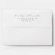This wedding envelope features a minimalist design with a clean, centered layout on a plain white background. The elegant script font for the names is complemented by a straightforward serif font for the address and zip code, creating a sophisticated and refined look. The soft charcoal gray color palette adds subtle contrast without overpowering the simplicity of the design. Ideal for formal occasions, this envelope conveys clarity and elegance through its thoughtful arrangement and restrained use of elements.