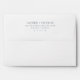 This wedding envelope features a minimalist and elegant design with a clean, modern layout. The muted grayish-blue text is set against a crisp white background, creating a sophisticated contrast that emphasizes clarity and readability. Customizable placeholders allow for personalization of names, addresses, and postal codes, making it perfect for a formal event. The simple typography and ample negative space convey a sense of tranquility and professionalism, ideal for those seeking an understated yet refined aesthetic for their special day.