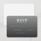 This elegant wedding RSVP card features a minimalist design with a sophisticated gray gradient background, creating a subtle depth that highlights the central text. The layout is clean and organized, utilizing classic serif fonts for a timeless look, perfect for formal events. Customizable fields allow guests to easily respond, enhancing functionality without compromising style. The overall mood is refined and professional, making it ideal for couples seeking a polished and straightforward invitation solution.