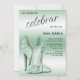 Beautiful classy and elegant Spanish birthday invitation for women. With two/2 shiny glittery green high heel/stiletto shoes decoration on a pretty matching coloured background. All text is fully customisable, if you would like help, please contact me through my store and i will be very happy to help you. Modern, trendy sophisticated fashionable design for women's events.