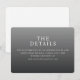 This wedding enclosure card features a minimalist design with a gradient background transitioning from light to dark grey, creating an elegant and sophisticated look. The layout is clean and well-spaced, emphasizing the text hierarchy with bold serif typography for "THE DETAILS" and lighter serif fonts for additional information. The grayscale colour palette adds a modern touch while maintaining a formal tone, perfect for conveying important details clearly. Ideal for weddings, this card provides a professional and straightforward way to direct guests to your website for more information.