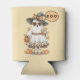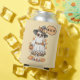 This cute little girly ghost is as bougee as you can get! Her beautiful party dress is white with an orange and black polka dot belt and an orange and black polka dot trim along the bottom. She is holding a jack o'lantern and there are pumpkins by her feet, which happen to have orange high heeled shoes on! She has a black witches hat on that has an orange and black bow accent. Orange heart shaped glasses complete her beautiful outfit!  Background is a pale orange/tan with white polka dots. These coolers are perfect for your Halloween party!